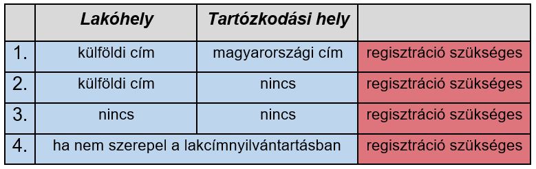 • Az alábbi táblázat mutatja, hogy milyen esetekben van szükség regisztrációra: